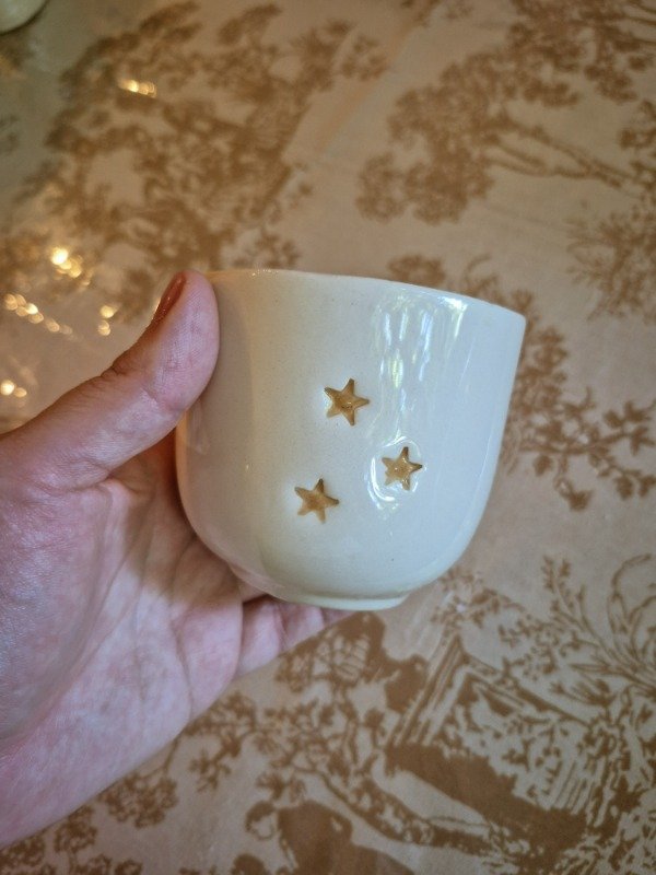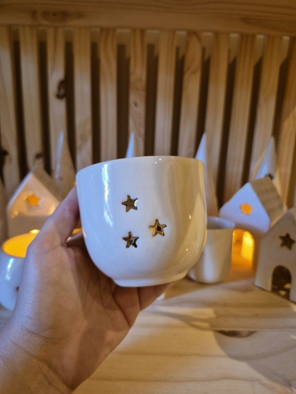 Cuenco alto con detalle de estrella. Ideal para vela o para la mesa dulce