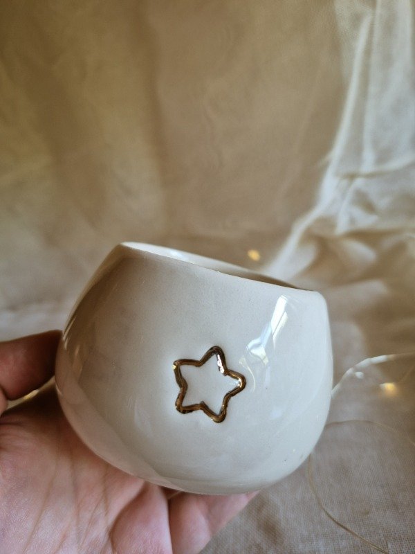 Cuenco bajo con detalle de estrella en oro. Ideal para vela o para la mesa dulce