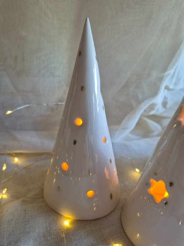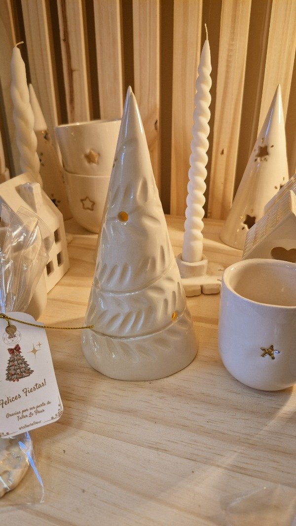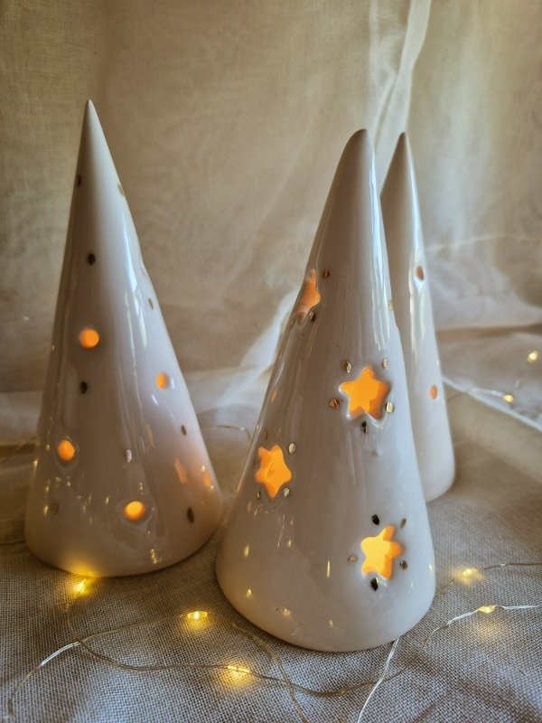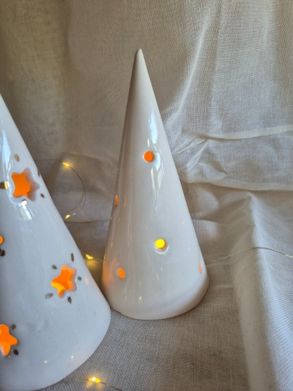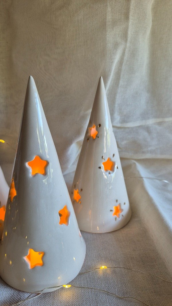 Pinos navideños de 18x9 cm. Ideales para usar con velita led así no se calienta la pieza.